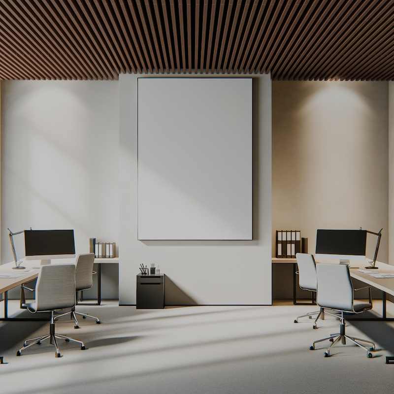 The best of both worlds: the beauty of Wood with the functionality of Felt. Grille Great was specifically designed for gridded ceilings and standard walls. Installing in just minutes, our patent-pending Feltware for ceilings is a 100% integrated Felt system, while walls uses our felt clips to z-bar. The system also provides a small air gap behind the panels to give us a industry-leading 1.05 NRC. Offered in 4 standard species, Grille Great easily waterfalls from ceiling to floor, cancelling reverb with no additional "in-fill" materials.
